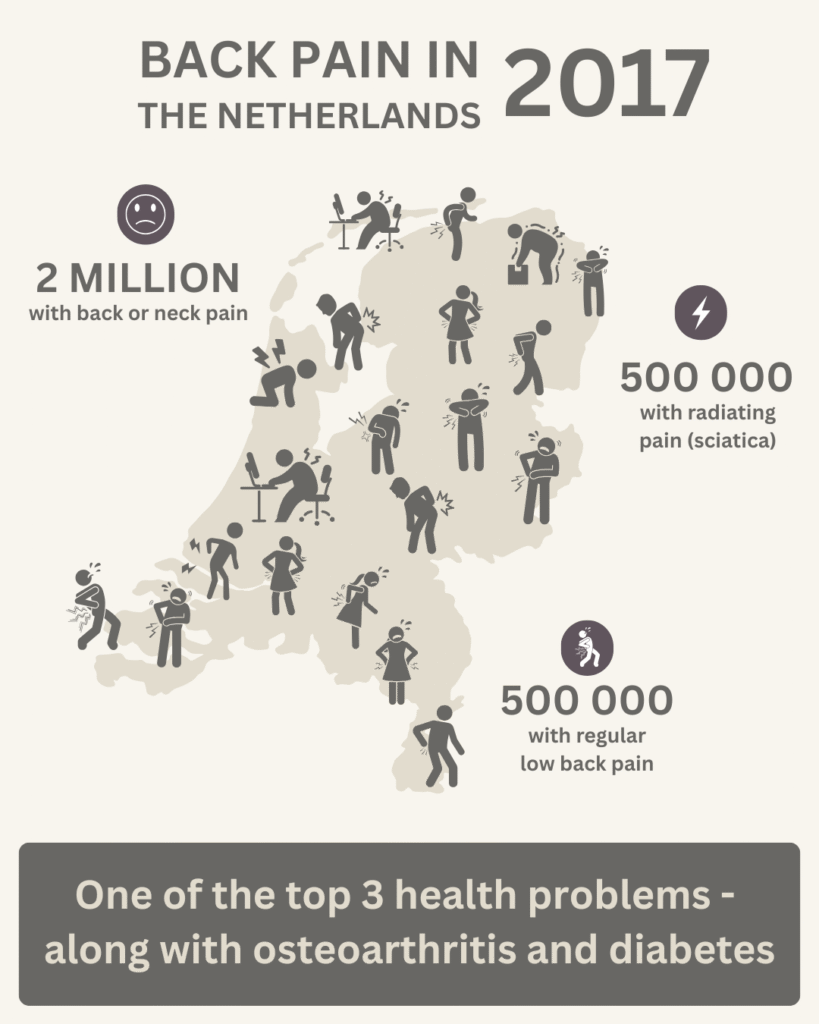 In the Netherlands, millions of people visit their doctor every year because of neck or back pain. In 2017 alone, more than 2 million people were registered with these problems.